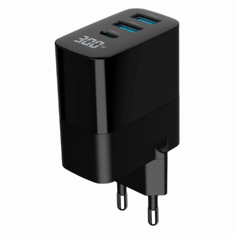 Gembird Φορτιστής Χωρίς Καλώδιο GaN με 2 Θύρες USB-A και Θύρα USB-C 30W Power Delivery / Quick Charge 3.0 Μαύρος (TA-UC-PDQC30LCD-BK-02) (TA-UC-PDQC30LCD-BK-02)