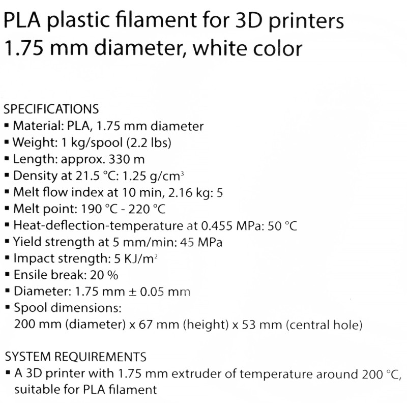 Τα προϊόντα που δεν αναγράφουν διαθέσιμο σημαίνει ότι δεν υπάρχουν άμεσα διαθέσιμα στο κατάστημα και θα παραληφθούν το αργότερο εντός των εργάσιμων ημερών που αναγράφεται στη διαθεσιμότητα. Σε κάθε περίπτωση η ημερομηνία μπορεί να μεταβληθεί και θα υπάρχει σχετική ενημέρωσή σας.Νήμα PLA για 3D εκτυπωτή από την Gembird σε λευκό χρώμα. Το PLA παράγεται από ανανεώσιμες πηγές όπως ζαχαρότευτλα και καλαμπόκι και είναι βιοδιασπώμενο. Είναι αρκετά δημοφιλές, καθώς είναι εύκολο στη χρήση του, γρήγορο στην εκτύπωση με πολύ καλή πρόσφυση σε κρύα πλατφόρμα. Μπορεί να υποστεί επεξεργασία κι έχει γυαλιστερή επιφάνεια. Είναι σκληρό αλλά πιο εύθραυστο από το ABS.