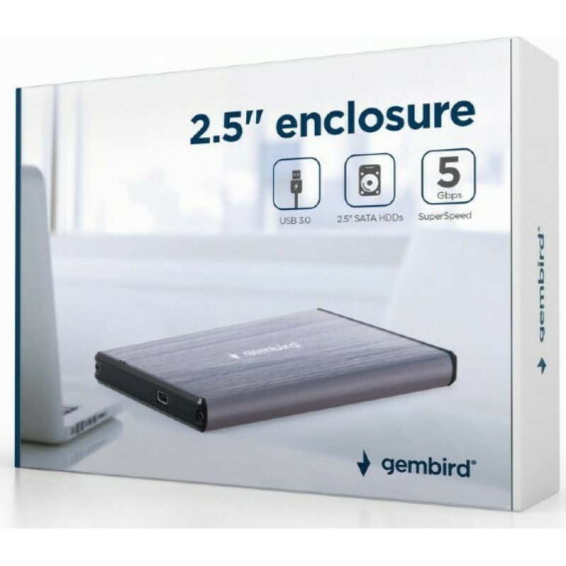 Gembird Θήκη για Σκληρό Δίσκο 2.5" SATA III με σύνδεση USB 3.0 σε Γκρι χρώμα (EE2-U3S-3-LG)
