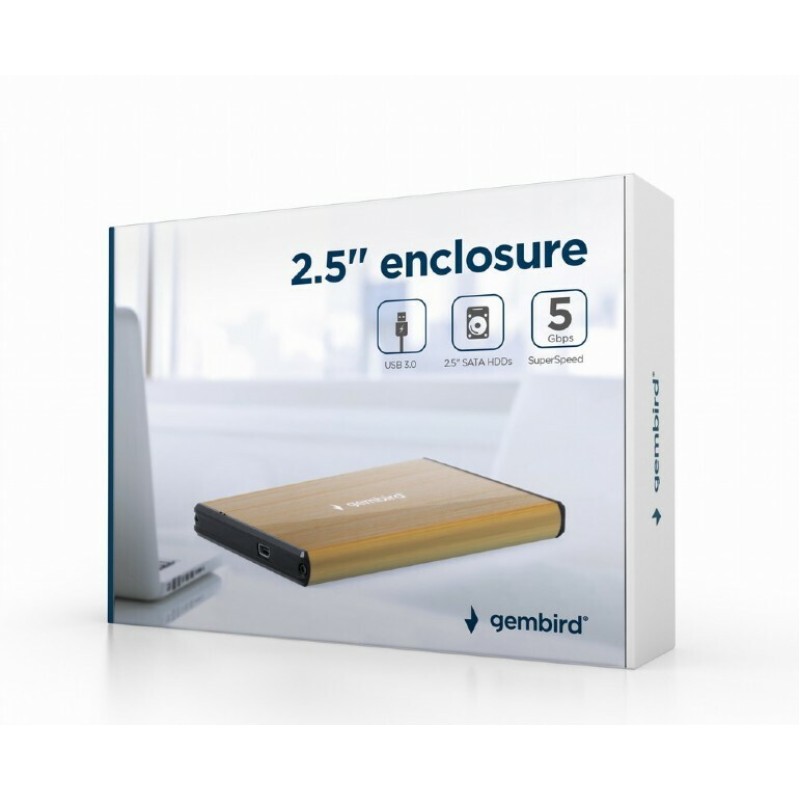 Gembird Θήκη για Σκληρό Δίσκο 2.5" SATA III με σύνδεση USB 3.0 σε Χρυσό χρώμα (EE2-U3S-3-GL)