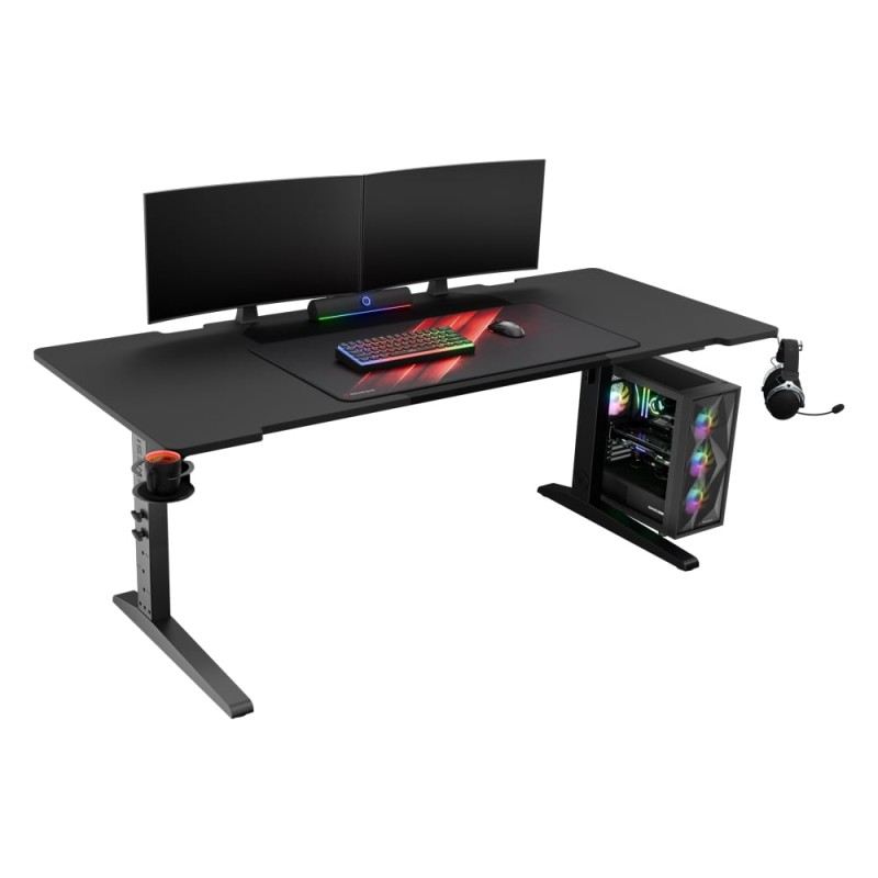 H επιφάνεια εργασίας Genesis Holm Modular 180 cm είναι σχεδιασμένη για μέγιστη ευελιξία: το ύψος ρυθμίζεται μεταξύ 70-90 cm, ενώ η βάση επιτρέπει επέκταση ή μετατροπή σε γωνιακή ρύθμιση με πρόσθετα πάνελ. Διαθέτει πρακτικά στοιχεία όπως ράφι για πολύπριζο, ειδική θήκη ποτηριού, κρεμάστρα για ακουστικά και οδηγό καλωδίων, που εξασφαλίζουν οργανωμένο και όμορφο setup. Με επιφάνεια 180 × 75 cm, κατασκευή από ανθεκτικό MDF και στιβαρό μεταλλικό σκελετό, το Holm Modular 180 προσφέρει σταθερότητα, άνεση και επαγγελματική εμφάνιση — ιδανικό για κάθε gaming setup ή χώρο γραφείου.