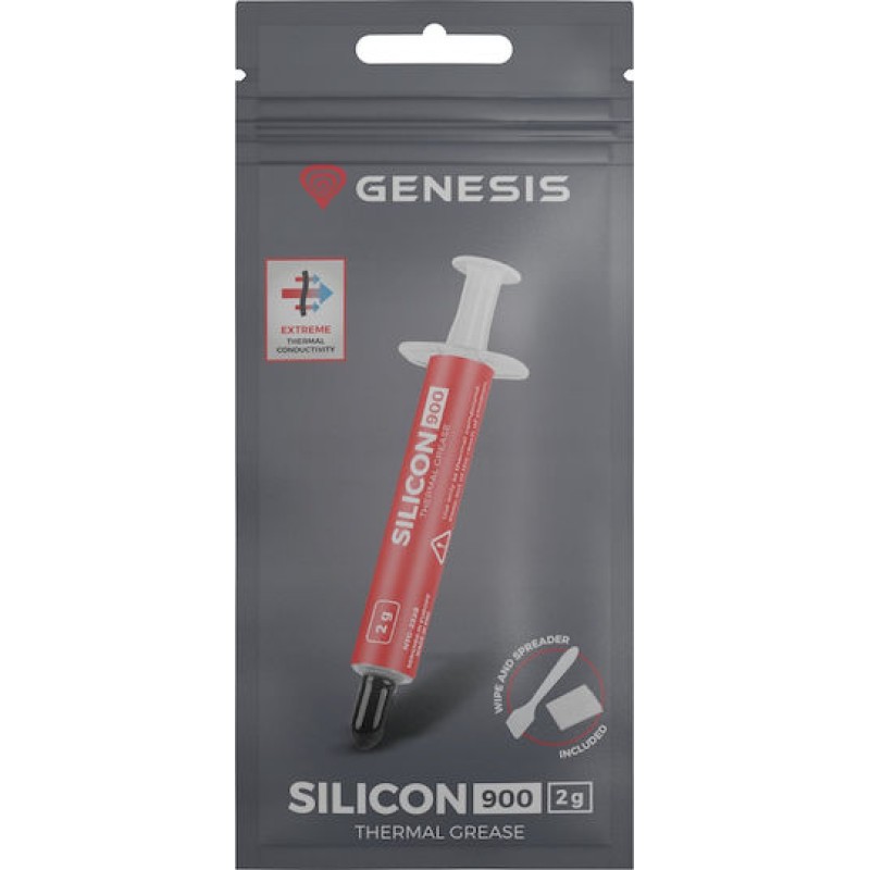Η Silicon 900 2g από τη σειρά προϊόντων GENESIS είναι μια υψηλής απόδοσης θερμοαγώγιμη πάστα που χρησιμοποιείται για βελτιστοποίηση της ψύξης επεξεργαστών (CPU), καρτών γραφικών και άλλα τσιπ.