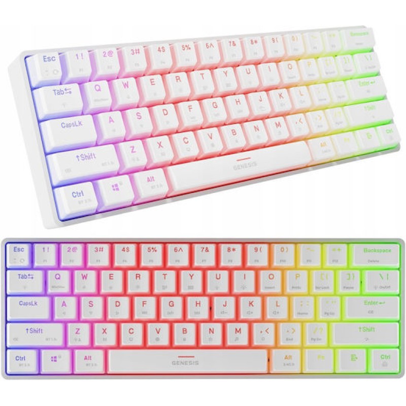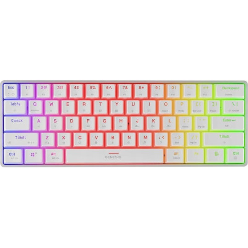 Genesis Thor 660 G2 Gaming Μηχανικό Πληκτρολόγιο 60% με Gateron Brown διακόπτες και RGB φωτισμό (Αγγλικό US) Λευκό