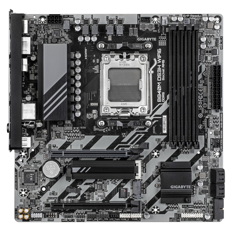 Τα προϊόντα που δεν αναγράφουν διαθέσιμο σημαίνει ότι δεν υπάρχουν άμεσα διαθέσιμα στο κατάστημα και θα παραληφθούν το αργότερο εντός των εργάσιμων ημερών που αναγράφεται στη διαθεσιμότητα. Σε κάθε περίπτωση η ημερομηνία μπορεί να μεταβληθεί και θα υπάρχει σχετική ενημέρωσή σας.Η μητρική πλακέτα με μέγεθος micro ATX είναι σχεδιασμένη για χρήση σε υπολογιστές desktop και υποστηρίζει επεξεργαστές AMD Ryzen των σειρών 7000, 8000 και 9000 με socket AM5. Υποστηρίζει μνήμη DDR5 με έως 4 DIMM slots και μέγιστη συχνότητα λειτουργίας 8200 MHz, προσφέροντας dual-channel αρχιτεκτονική. Διαθέτει chipset AMD B840 και παρέχει πλούσιες δυνατότητες συνδεσιμότητας, όπως θύρες USB 2.0, USB 3.2 Gen 1, θύρες SATA III, καθώς και υποστήριξη για M.2 SSD με PCI Express 4.0. Η μητρική διαθέτει επίσης ενσωματωμένη κάρτα ήχου Realtek ALC897 με 7.1 κανάλια, υποστήριξη δικτύου 2.5 Gigabit Ethernet και Wi-Fi 6 με Bluetooth 5.3. Επιπλέον, προσφέρει λειτουργίες όπως BIOS Flashback και RGB header για φωτισμό, ενώ η ψύξη είναι παθητική.