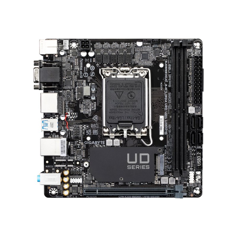 Τα προϊόντα που δεν αναγράφουν διαθέσιμο σημαίνει ότι δεν υπάρχουν άμεσα διαθέσιμα στο κατάστημα και θα παραληφθούν το αργότερο εντός των εργάσιμων ημερών που αναγράφεται στη διαθεσιμότητα. Σε κάθε περίπτωση η ημερομηνία μπορεί να μεταβληθεί και θα υπάρχει σχετική ενημέρωσή σας.Η μητρική πλακέτα mini ITX με chipset Intel H610 υποστηρίζει έναν επεξεργαστή με socket LGA1700, συμβατό με τις 12η, 13η και 14η γενιά Intel Core, Pentium Gold και Celeron. Υποστηρίζει έως 64 GB DDR5 μνήμης RAM με ταχύτητες 4400, 4800, 5200 και 5600 MHz σε dual channel αρχιτεκτονική. Διαθέτει μία υποδοχή PCIe 4.0 x16, τέσσερις θύρες SATA III 6Gb/s και μία υποδοχή M.2 PCIe 3.0 για αποθήκευση. Παρέχει πλήθος θυρών USB, θύρα Gigabit Ethernet και υποδοχές για οθόνες DisplayPort, HDMI και VGA, καθιστώντας την ιδανική για compact desktop συστήματα με υψηλές απαιτήσεις απόδοσης.