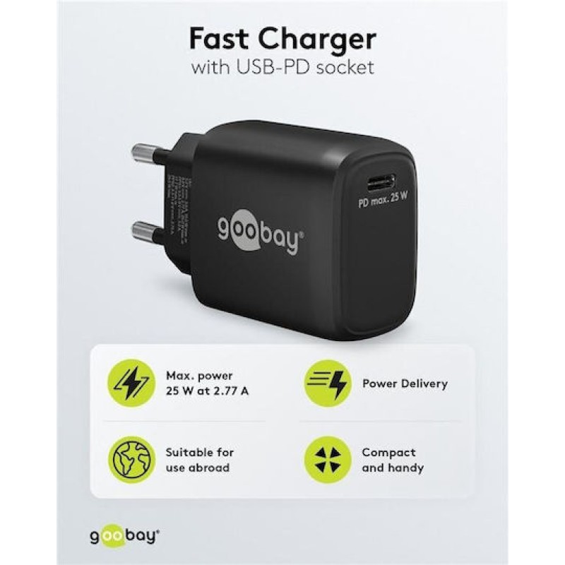 Goobay Φορτιστής Χωρίς Καλώδιο με Θύρα USB-C 25W Power Delivery Μαύρος (65367) (65367)