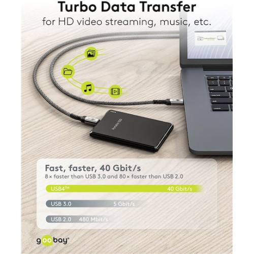 Goobay USB 3.0 Cable USB-C male - USB-C 240W Γκρι 1.5m (74212)
