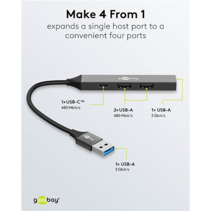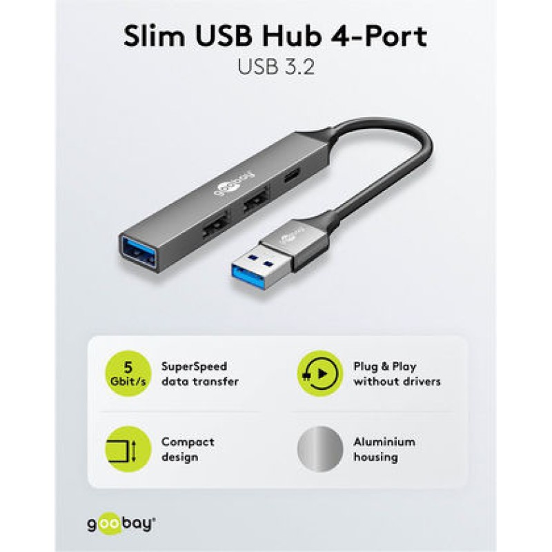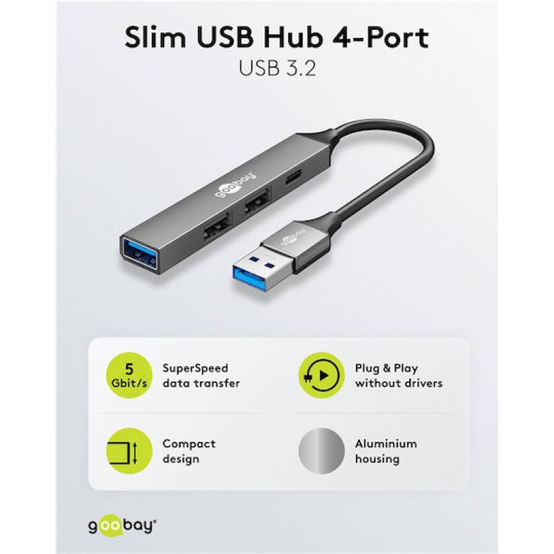 Τα προϊόντα που δεν αναγράφουν διαθέσιμο σημαίνει ότι δεν υπάρχουν άμεσα διαθέσιμα στο κατάστημα και θα παραληφθούν το αργότερο εντός των εργάσιμων ημερών που αναγράφεται στη διαθεσιμότητα. Σε κάθε περίπτωση η ημερομηνία μπορεί να μεταβληθεί και θα υπάρχει σχετική ενημέρωσή σας.GOOBAY USB hub 74458 με 4 θυρες, USB 3.2, ταχύτητα 5Gbps, USB σύνδεση, γκρι.