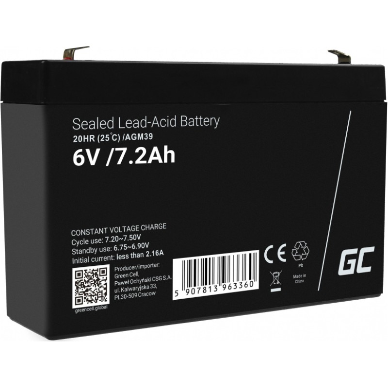 Green Cell Μπαταρία UPS με Χωρητικότητα 7.2Ah και Τάση 6V AGM39 (AGM39)