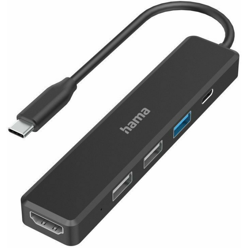 Διανομέας USB-C απο την Hama με 5 συνδέσεις για όταν οι υποδοχές είναι ελλιπείς (ή πρόκειται να επεκταθούν) σε υπολογιστή, φορητό υπολογιστή, MacBook ή tablet ή εάν πρόκειται να συνδεθούν / αποσυνδεθούν πολλές συσκευές κεντρικά μέσω ενός μόνο βύσματος Plug & Play, δεν απαιτείται χειροκίνητη εγκατάσταση λογισμικού / προγράμματος οδήγησης.