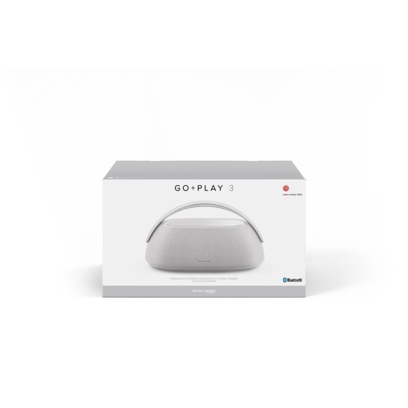 Το Go + Play 3 της Harman Kardon έχει οικείο σχήμα, αλλά στην τελευταία του γενιά διαθέτει ένα πάνελ αφής με επιφάνεια από tempered glass που ανταποκρίνεται άμεσα και είναι απόλυτα διαισθητικό στη χρήση. Το ύφασμα της γρίλιας κεντρίζει το ενδιαφέρον και η κομψή αλλά ανθεκτική λαβή από αλουμίνιο υψηλής ποιότητας είναι εργονομικά σχεδιασμένη ώστε να είναι εύκολη η μεταφορά του στο σπίτι σας.
