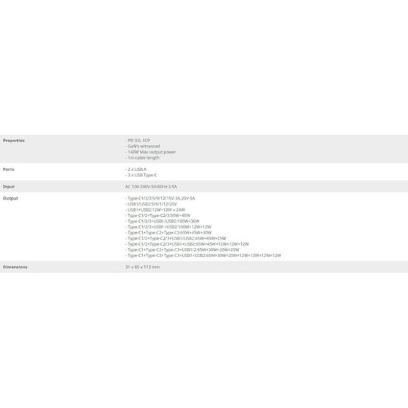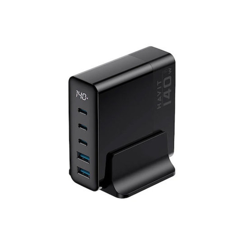 Havit Βάση Φόρτισης GaN με 2 Θύρες USB-A και 3 Θύρες USB-C 140W Power Delivery σε Μαύρο χρώμα (UCLE004) (UCLE004 EU)