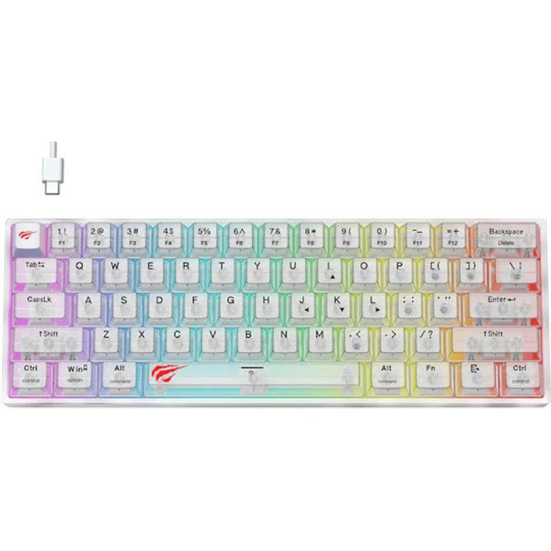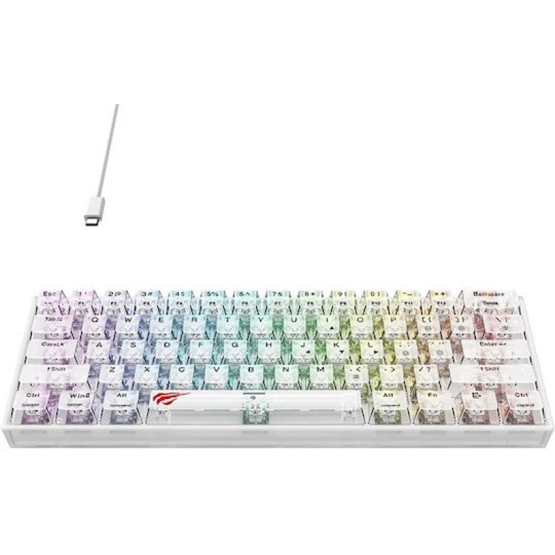Τα προϊόντα που δεν αναγράφουν διαθέσιμο σημαίνει ότι δεν υπάρχουν άμεσα διαθέσιμα στο κατάστημα και θα παραληφθούν το αργότερο εντός των εργάσιμων ημερών που αναγράφεται στη διαθεσιμότητα. Σε κάθε περίπτωση η ημερομηνία μπορεί να μεταβληθεί και θα υπάρχει σχετική ενημέρωσή σας.Havit KB877L Gaming Μηχανικό Πληκτρολόγιο 60% με Custom διακόπτες και RGB φωτισμό (Αγγλικό US) Transparent White