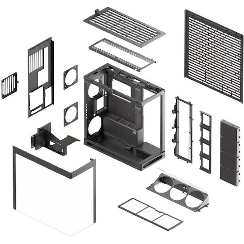 • Σχεδιασμός βελτιστοποιημένης θερμικής απόδοσης με προσαρμοσμένο εξαερισμό, ιδανικός για ανεμιστήρες 140 mm (11 θέσεις ανεμιστήρων συνολικά) και radiators έως 420 mm επάνω, στο πλάι και στο κάτω μέρος.