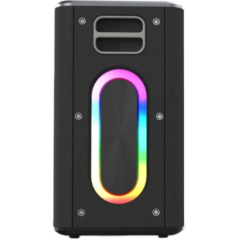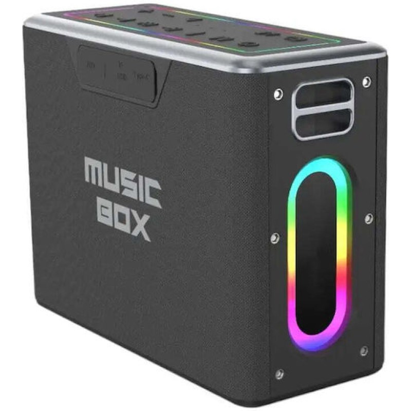 Είτε πρόκειται για χρήση στο σπίτι είτε για ένα πάρτι στην παραλία είτε για ένα μπάρμπεκιου με φίλους, το Music Box είναι ιδανικό για αυτές και πολλές άλλες περιπτώσεις! Διαθέτει μικρό μέγεθος και φορητό σχεδιασμό - ζυγίζει μόλις 2.58kg και έχει διαστάσεις 230 x 100 x 182.75mm. Έτσι, μπορείτε εύκολα να το πάρετε μαζί σας σχεδόν παντού! Το πρόσθετο πλεονέκτημά του είναι ο πολύχρωμος οπίσθιος φωτισμός RGB, ο οποίος του δίνει μια κομψή και μοντέρνα εμφάνιση. Τώρα μπορείτε εύκολα να δημιουργήσετε αξέχαστη ατμόσφαιρα σε κάθε πάρτι, όπου κι αν γίνεται! Στη συσκευασία περιλαμβάνεται και ένας ιμάντας ώμου για την εύκολη μεταφορά του ηχείου.