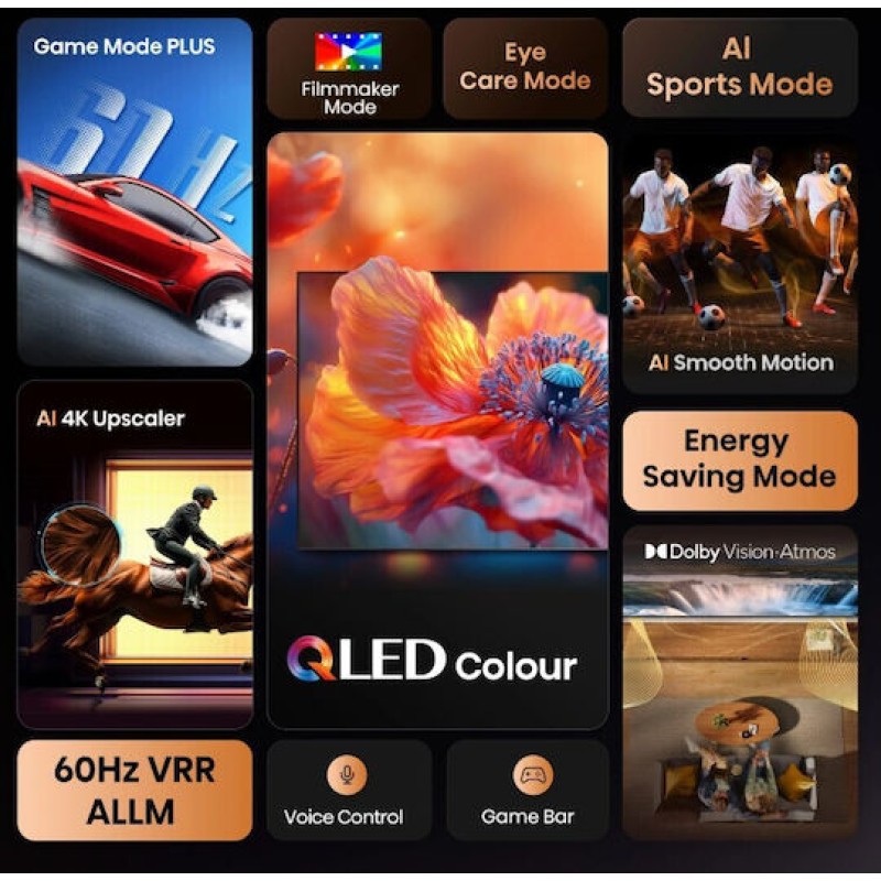 Απόλαυσε μια οπτική εμπειρία με QLED Colour. Κάθε καρέ γεμίζει με πλούσιο, ζωντανό και ρεαλιστικό χρώμα, αναδεικνύοντας και την πιο διακριτική αλλά και την πιο έντονη απόχρωση.
