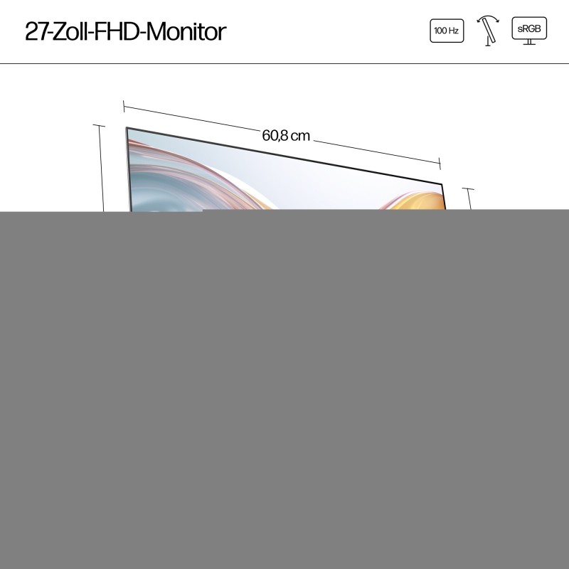 Τα προϊόντα που δεν αναγράφουν διαθέσιμο σημαίνει ότι δεν υπάρχουν άμεσα διαθέσιμα στο κατάστημα και θα παραληφθούν το αργότερο εντός των εργάσιμων ημερών που αναγράφεται στη διαθεσιμότητα. Σε κάθε περίπτωση η ημερομηνία μπορεί να μεταβληθεί και θα υπάρχει σχετική ενημέρωσή σας.Η οθόνη διαθέτει διαγώνιο 27 ιντσών (68.6 cm) με ανάλυση Full HD 1920 x 1080 pixels και αναλογία διαστάσεων 16:9. Χρησιμοποιεί τεχνολογία IPS LCD panel με LED οπίσθιο φωτισμό τύπου Edge LED, προσφέροντας ζωντανά χρώματα και ευρεία γωνία θέασης 178°. Η οθόνη έχει αντιθαμβωτική ματ επιφάνεια και υποστηρίζει 16.7 εκατομμύρια χρώματα με κάλυψη sRGB 99%. Ο ρυθμός ανανέωσης φτάνει τα 100 Hz και ο χρόνος απόκρισης είναι 5 ms GTG, ιδανικός για καθημερινή χρήση και gaming με καθαρή εικόνα και μειωμένο motion blur. Επιπλέον, διαθέτει τεχνολογίες Flicker-free και Low Blue Light για προστασία των ματιών.