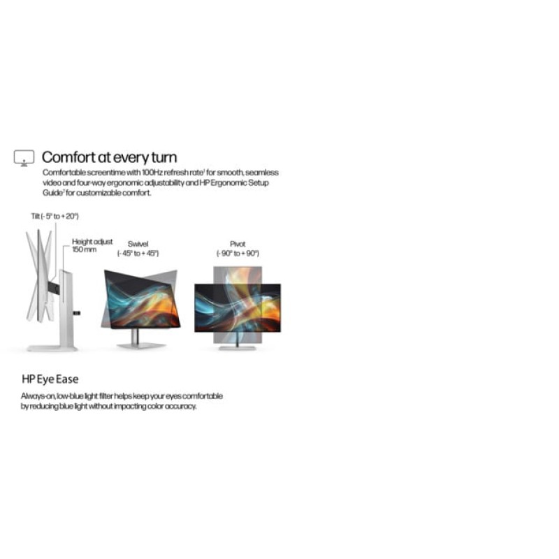| Εργονομία | Ρύθμιση ύψους (μέχρι 15 cm), κλίση (-5° έως 20°), περιστροφή (-90° έως 90°), στροφή (-45° έως 45°), VESA 100 x 100 mm |