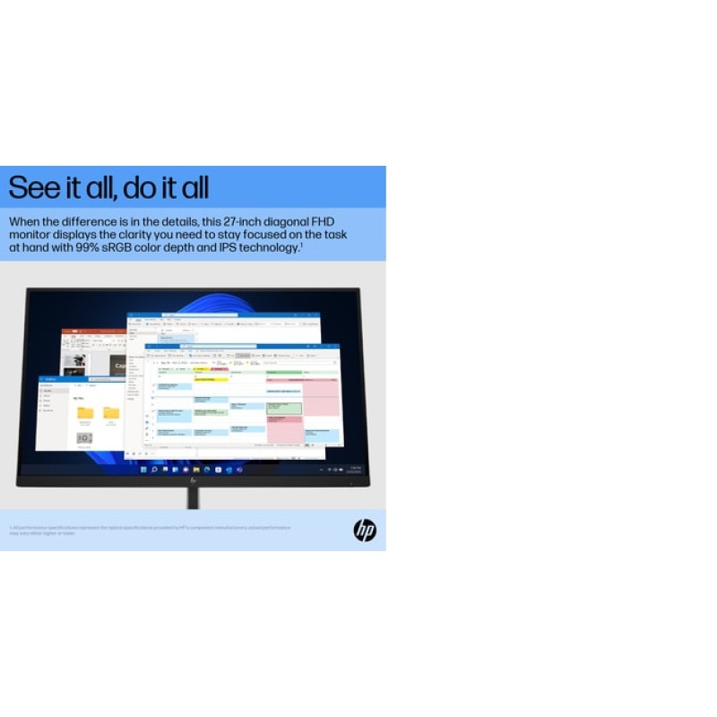 | Επιπλέον Χαρακτηριστικά | On-screen Digital Controls, Low Blue Light Mode, Flicker Free, 3 Side Borderless Design, 8-bit (6-bit + FRC) Colour Depth, HP Eye Ease, USB Hub, Kensington security slot, αποσπώμενη βάση |