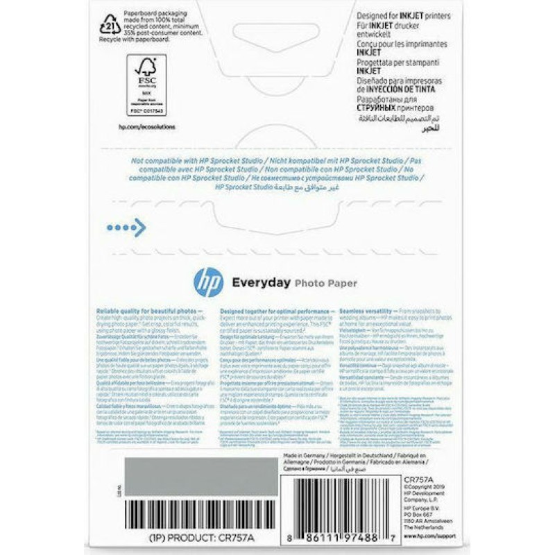 HP Everyday Glossy Φωτογραφικό Χαρτί A6 (10x15) 200gr/m² για Εκτυπωτές Inkjet 100 Φύλλα (CR757A)