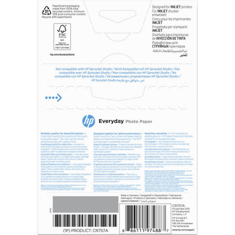 Διασκεδάστε, εκτυπώστε και μοιραστείτε τις φωτογραφίες σας με όλους. Εκτυπώστε λαμπερές, γυαλιστερές φωτογραφίες, ιδανικές για να μετατρέψετε τις ιδέες σας σε αυθόρμητες φωτογραφίες σπιτιού, σχολικές εργασίες ή χειροτεχνίες. Εκτυπώστε με φωτογραφικά χαρτιά HP με πιστοποίηση FSC®, τα οποία προέρχονται από δάση που υπόκεινται σε βιώσιμη διαχείριση σύμφωνα με τα πρότυπα του Forest Stewardship Council®. Οι φωτογραφίες σας είναι ανακυκλώσιμες ως μικτό χαρτί. Ανακυκλώσιμο χαρτί με πιστοποίηση FSC®. Κορνιζάρετε άμεσα τις εκτυπώσεις σας με γρήγορο στέγνωμα. Οι ανθεκτικές φωτογραφίες σας αντιστέκονται στο ξεθώριασμα για γενιές όταν εκτυπώνονται με γνήσια μελάνη HP. Δημιουργήστε ανθεκτικές, φωτογραφίες που αντέχουν στο χρόνο σε εκτυπωτές inkjet. Με την οικονομική εκτύπωση φωτογραφιών στο σπίτι, μπορείτε να καλύψετε κάθε τοίχο και να μοιραστείτε κάθε ανάμνηση σε αυτό το χαρτί με πιστοποίηση FSC®. Οι ανθεκτικές στο ξεθώριασμα εκτυπώσεις σας έχουν γυαλιστερό φινίρισμα για λαμπερές φωτογραφίες. Δημιουργήστε οικονομικά, ποιοτικά φωτογραφικά έργα στο σπίτι.