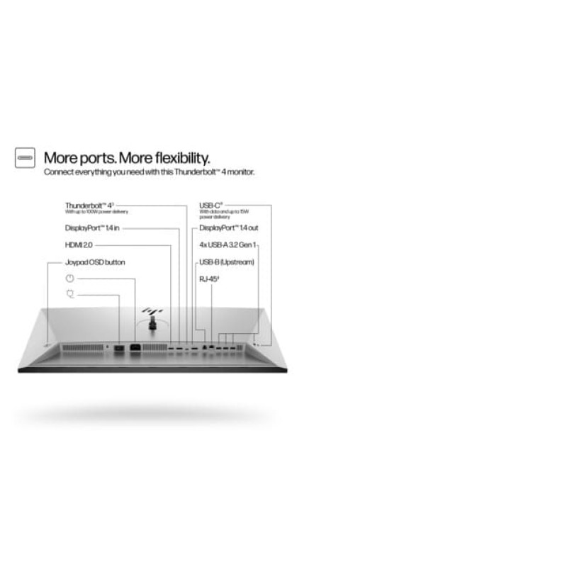 | Διασυνδέσεις | DisplayPort (HDCP), DisplayPort output (HDCP), HDMI (HDCP), USB 3.2 Gen 1 upstream (Type B), 4 x USB 3.2 Gen 1 downstream, Thunderbolt 4/USB-C 3.2 Gen 2 upstream/DisplayPort 1.4 (DisplayPort Alt Mode, data, power up to 100W), Network (RJ-45) |