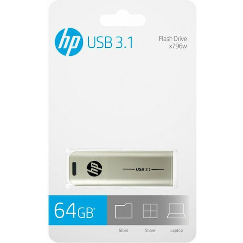HP X796W 64GB USB 3.2 Stick Ασημί (HPFD796L-64)