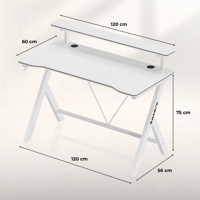 Λευκό γραφείο gaming με επιφάνεια 120 cm