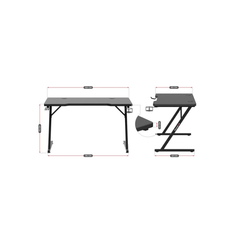 Huzaro Hero 2.5 Γραφείο Gaming Μαύρο (HZ-HERO 2.5)