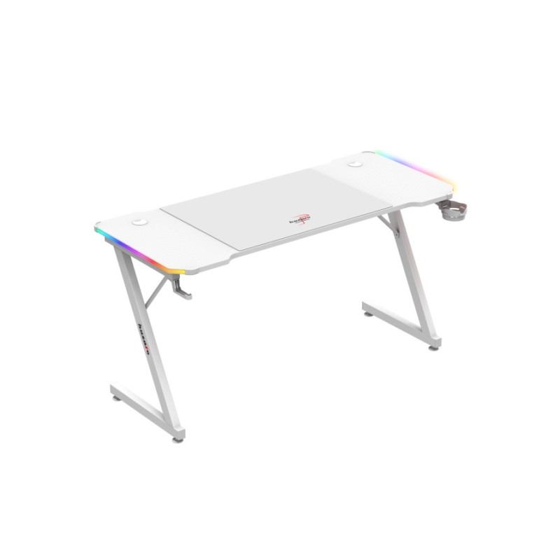 RGB LED φωτισμός και στις δύο άκρες της επιφάνειας του γραφείου Τηλεχειριστήριο για ρύθμιση του φωτισμού Συμπεριλαμβάνεται XXL mousepad 2 είσοδοι καλωδίων Δίσκος καλωδίων κάτω από την επιφάνεια Μεγάλη επιφάνεια γραφείου με επικάλυψη ανθρακονημάτων Στρογγυλεμένες γωνίες του γραφείου Σταθερή κατασκευή Ρυθμιζόμενα πόδια Θέσεις για ακουστικά και ποτήρι