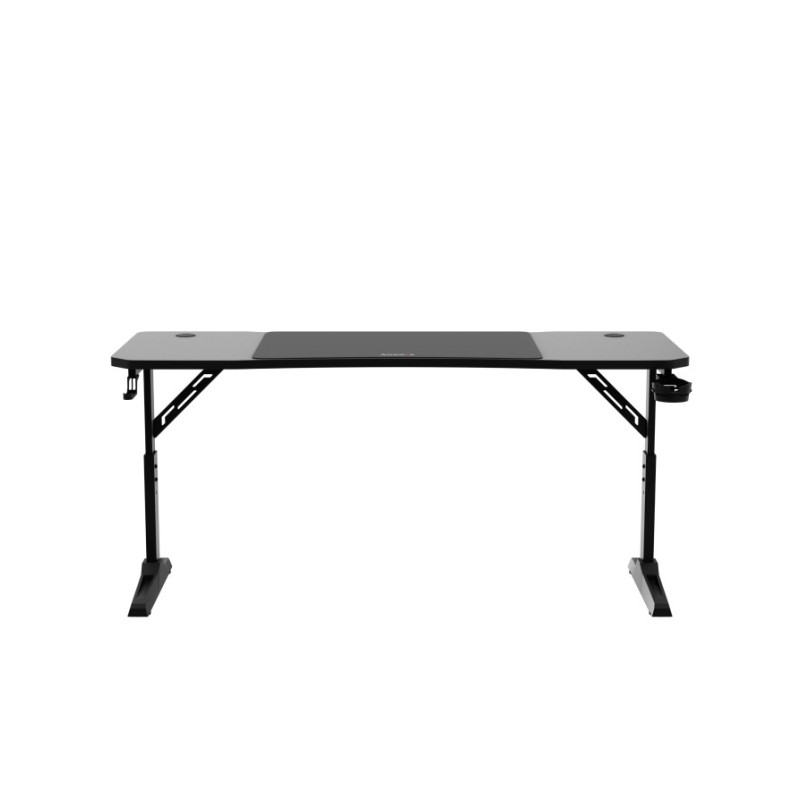 Η ενισχυμένη ατσάλινη κατασκευή εγγυάται σταθερότητα ακόμα και στις πιο απαιτητικές στιγμές παιχνιδιού. Για ακόμα μεγαλύτερη πρακτικότητα, το γραφείο διαθέτει θήκη για ποτήρι και γάντζο για τσάντα ή ακουστικά, κρατώντας τον χώρο σας οργανωμένο.