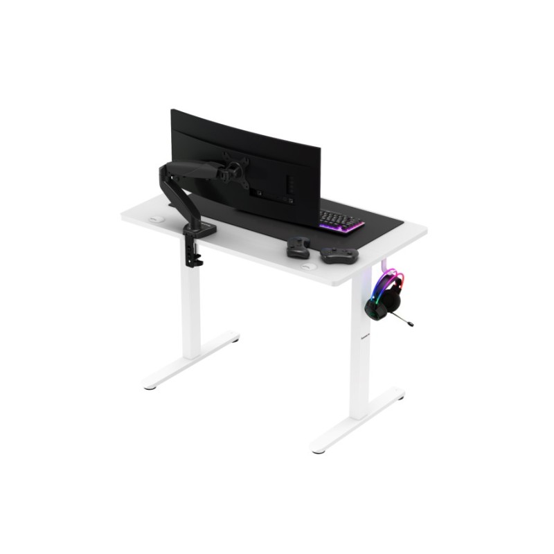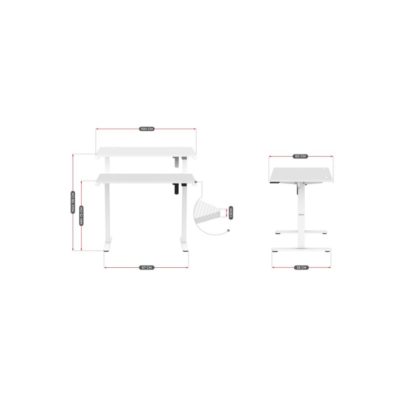 Εργονομικό γραφείο με ηλεκτρική ρύθμιση ύψους της επιφάνειας του Για άνετη εργασία σε καθιστή και όρθια θέση Αθόρυβο, ομαλό μοτέρ Εύκολη στη χρήση ρύθμιση ύψους από 72 cm έως και 118 cm Επιφάνεια γραφείου με επίστρωση ανθεκτική στις γρατσουνιές και τη βρωμιά Θήκες για ακουστικά και σακίδιο ή τσάντα Είσοδος καλωδίων και στις δύο πλευρές του γραφείου Πλάτος επιφάνειας τραπεζιού 100 cm Μέγιστο φορτίο 70 kg Μινιμαλιστικός σχεδιασμός που ταιριάζει τόσο στο σπίτι όσο και στο γραφείο Πιστοποίηση CE και ROHS