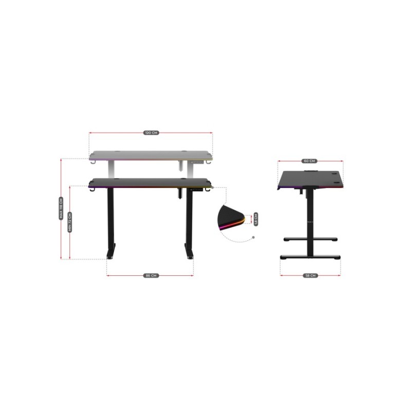 Huzaro Hero 8.2 RGB LED Ηλεκτρικό Γραφείο Gaming Μαύρο (HZ-HERO 8.2 RGB)