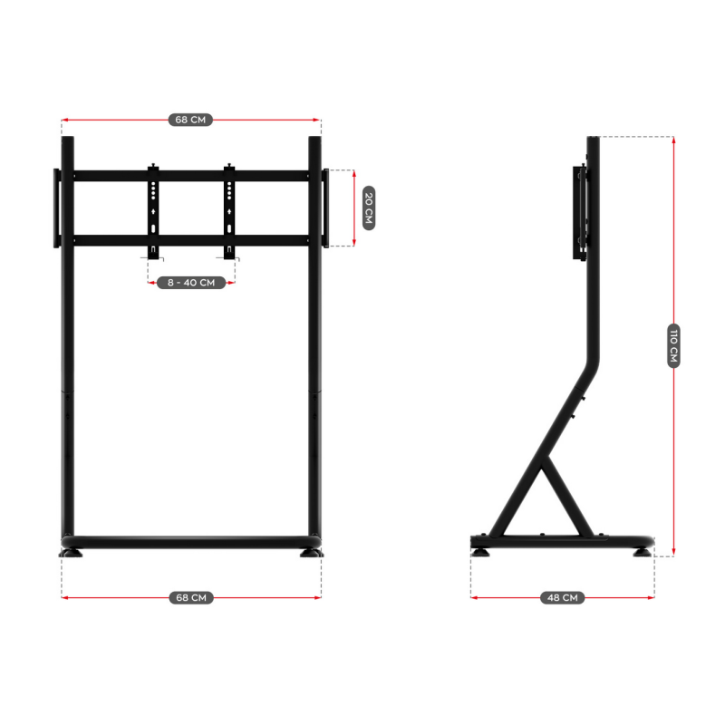 Το Huzaro Speed 9.1 TV Stand είναι μια ελεύθερη, καθολική βάση για τηλεόραση ή monitor, ιδανική για gaming setups και simracing. Είναι συμβατή με πρότυπα VESA 75x75 έως 400x200 και υποστηρίζει οθόνες 32–55 ιντσών με μέγιστο βάρος έως 50 kg. Διαθέτει ρυθμιζόμενο ύψος για άνετη θέαση και παιχνίδι, καθώς και ρυθμιζόμενα πέλματα που αντισταθμίζουν μικρές ανωμαλίες του δαπέδου, εξασφαλίζοντας σταθερότητα και σωστή γωνία θέασης. Η κατασκευή με βαφή πούδρας προσφέρει αντοχή σε γρατζουνιές και φθορές, ενώ τα στιβαρά προφίλ ενισχύουν τη σταθερότητα. Αποτελεί ιδανική επιλογή για χρήση με cockpit όπως το Speed 9.0, αλλά και για παρακολούθηση τηλεόρασης ή gaming με κονσόλα σε οποιονδήποτε χώρο.