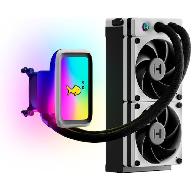 Το HYTE THICC Q60 είναι ένα premium σύστημα υδρόψυξης CPU (AIO) 240 mm που συνδυάζει υψηλή απόδοση ψύξης με εντυπωσιακό design. Διαθέτει μεγάλο ψυγείο 52 mm, δύο ισχυρούς ανεμιστήρες FP12 έως 3000 RPM και διπλή αντλία για αποτελεσματική και αθόρυβη κυκλοφορία υγρού. Ξεχωρίζει με την ενσωματωμένη οθόνη 5" IPS (720×1280, 60 Hz) και τον RGB φωτισμό 42 pixel, που επιτρέπουν προβολή πληροφοριών συστήματος ή custom γραφικών. Είναι συμβατό με σύγχρονα sockets Intel και AMD και προσφέρει προηγμένο έλεγχο φωτισμού και ψύξης μέσω του συστήματος Nexus Link.
