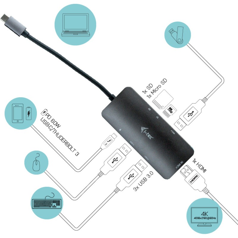 Station της εταιρίας i-tec που συνδέεται σε Laptop με θύρα USB-C.