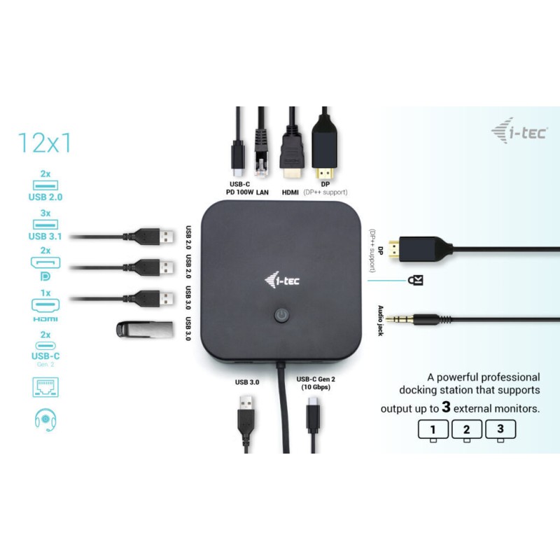 Station της εταιρίας i-tec που συνδέεται σε Laptop με θύρα USB-C.