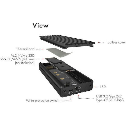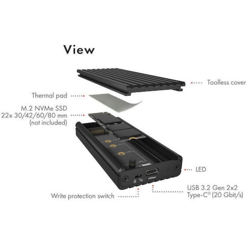 Icy Box External Θήκη για Σκληρό Δίσκο M.2 PCI Express NVME με σύνδεση Type-C (IB-1917M-C32A)