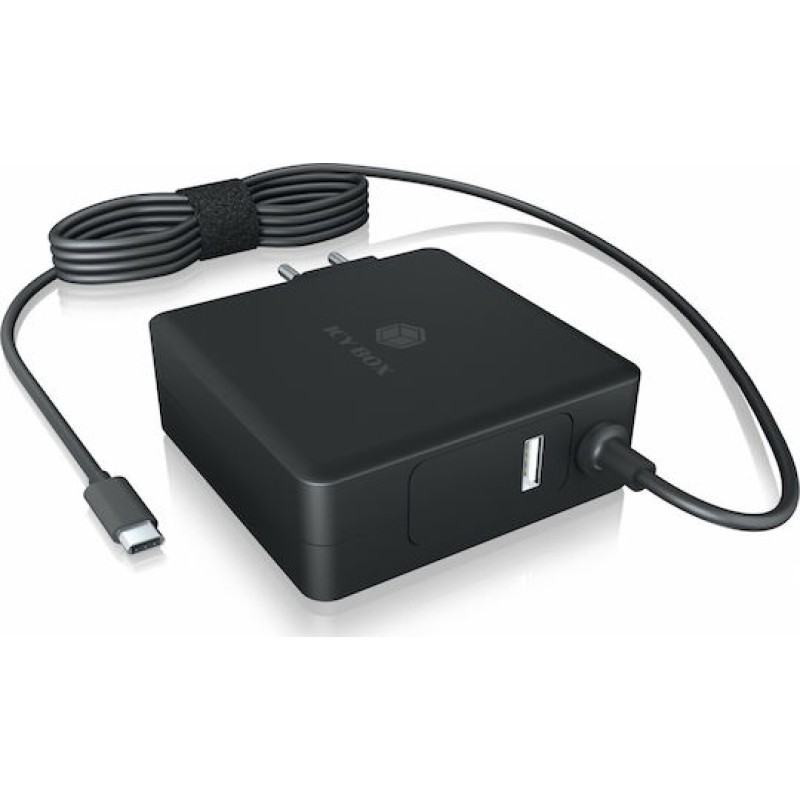 Icy Box Φορτιστής με Ενσωματωμένο Καλώδιο USB-C 90W Power Delivery Μαύρος (IB-PS101-PD) (60772)
