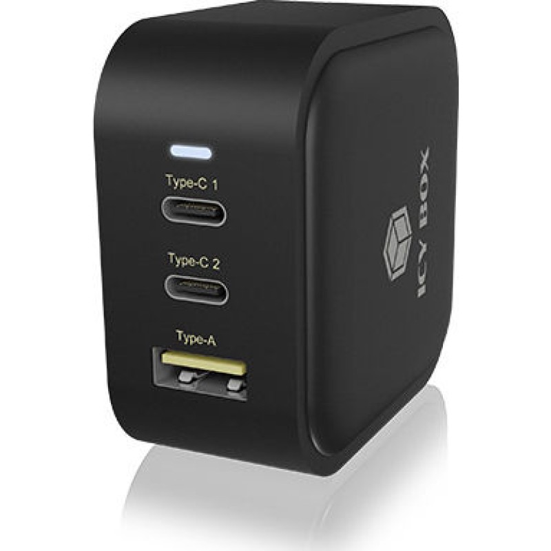 Icy Box Φορτιστής Χωρίς Καλώδιο με Θύρα USB-A και 2 Θύρες USB-C 65W Power Delivery Μαύρος (IB-PS103-PD) (61115)