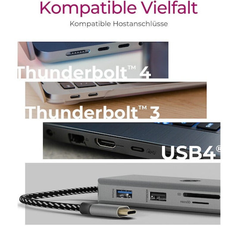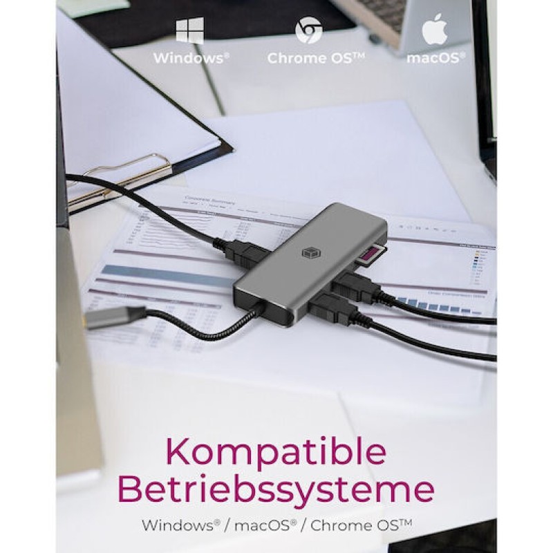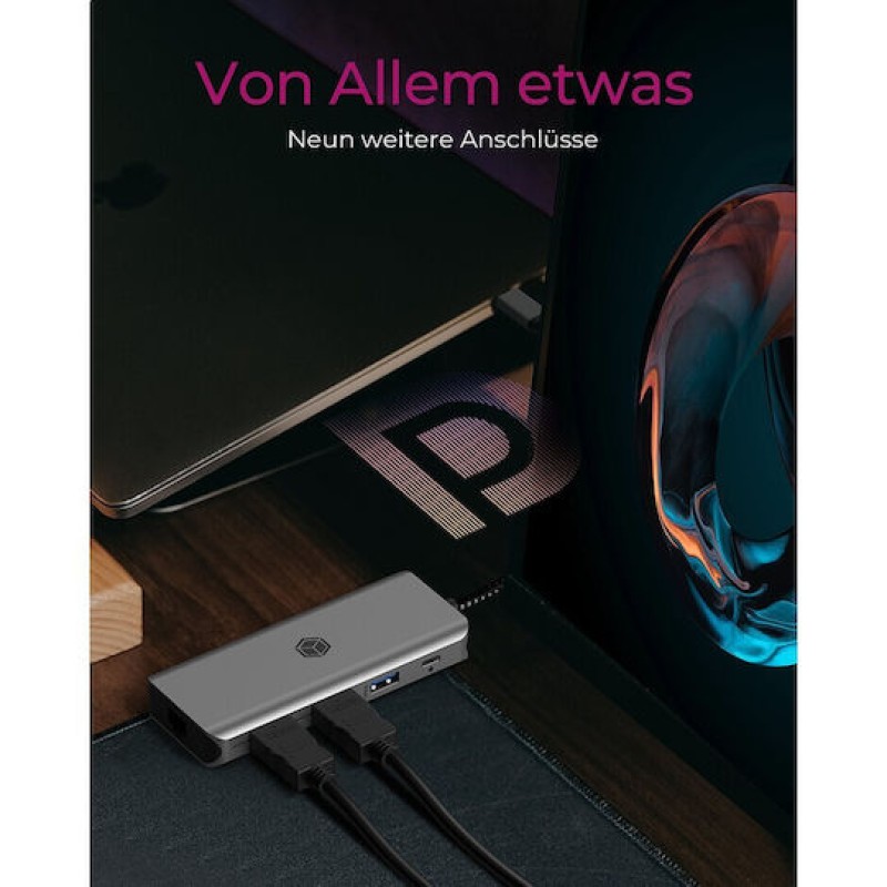 Icy Box IB-DK4012-CPD USB-C Docking Station με HDMI 4K PD Ethernet και σύνδεση 2 Οθονών Γκρι