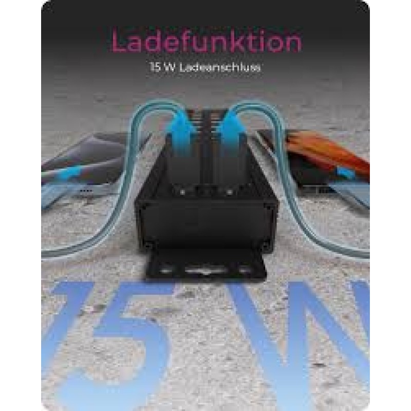 Θύρες φόρτισης: 2 θύρες USB-A με ισχύ 15W για γρήγορη φόρτιση συσκευών.