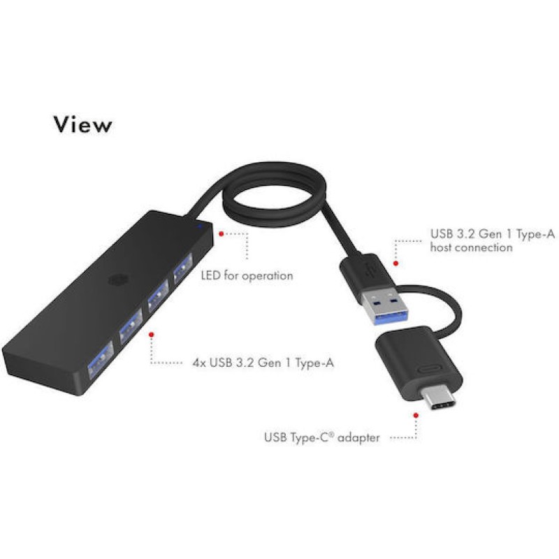 Το USB hub 4 θυρών IB-HUB1424-C3 της Icy Box είναι ιδανικό για χρήση στο γραφείο, στο σπίτι ή κατά τη διάρκεια ταξιδιού. Διαθέτει τέσσερις θύρες USB 3.2 Gen 1x1 Type-A για σύνδεση διαφόρων USB συσκευών.