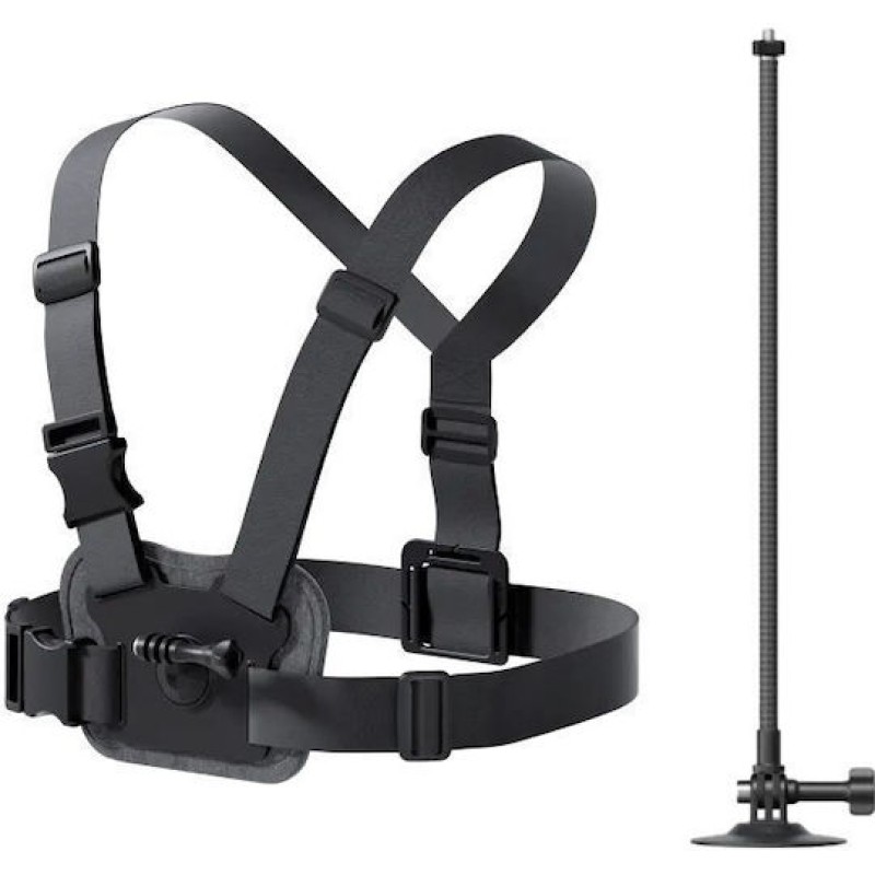 Βάση στήθους με περιστρεφόμενη βάση για κάθετη και οριζόντια τοποθέτηση της κάμερας. Μπούμα για το κράνος σας για μοναδικά πλάνα. Αυτοκόλλητη τοποθέτηση με ανθεκτικό αυτοκόλλητο 3M για σταθερότητα.
