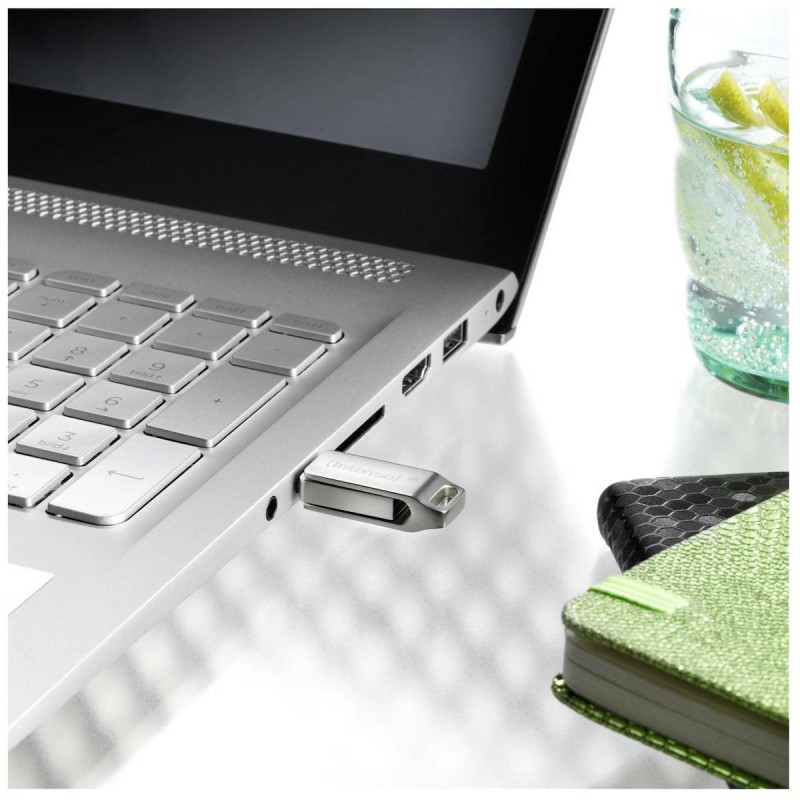 USB Stick της εταιρίας Intenso που διαθέτει χωρητικότητα 32GB. Υποθέτοντας ότι το μέσο μέγεθος για μια φωτογραφία, ένα MP3 και ένα Video είναι 2MB, 4MB και 500MB αντίστοιχα, τότε το μέγεθος αυτού του USB μπορεί να αποθηκεύσει περίπου έως 15.000 φωτογραφίες, ή 7.500 MP3 ή 61 Video.  To interface του είναι USB 3.1. Πρόκειται για πιο γρήγορη μεταφορά δεδομένων (10 Gbit/s) από τις προηγούμενες εκδόσεις, όταν συνδέεται σε θύρα USB 3.1. Επίσης είναι συμβατό με παλαιότερες εκδόσεις. (Αναφέρεται και ως USB 3.1 Gen 2 / 3.2 Gen 2.)