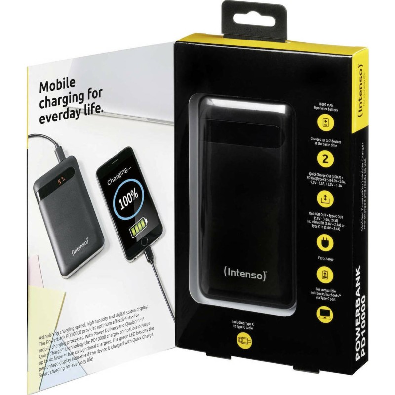 Intenso PD10000 Power Bank 10000mAh με Θύρα USB-A και Θύρα USB-C Quick Charge 3.0 Μαύρο (7332330)