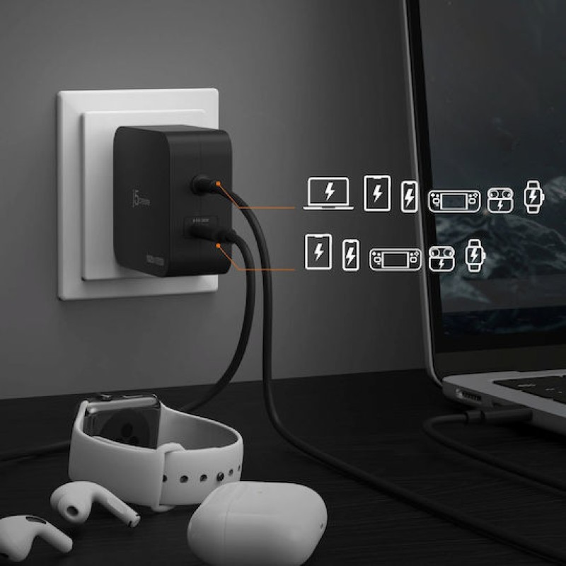 J5create Φορτιστής με Ενσωματωμένο Καλώδιο GaN με Θύρα USB-C USB-C 102W Power Delivery Μαύρος (JUP25102V-N) (JUP25102V-N)