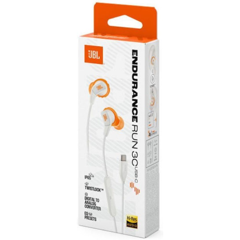 JBL Endurance RUN 3 In-ear Sport Headphones USB-C Λευκά (JBLENDURRUN3CWHT)