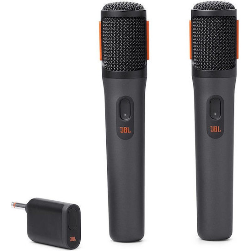 Τα προϊόντα που δεν αναγράφουν διαθέσιμο σημαίνει ότι δεν υπάρχουν άμεσα διαθέσιμα στο κατάστημα και θα παραληφθούν το αργότερο εντός των εργάσιμων ημερών που αναγράφεται στη διαθεσιμότητα. Σε κάθε περίπτωση η ημερομηνία μπορεί να μεταβληθεί και θα υπάρχει σχετική ενημέρωσή σας.Κάνε τις καλές στιγμές ακόμα καλύτερες με τα JBL PartyBox Wireless Mics. Απλώς σύνδεσέ τα με οποιοδήποτε JBL PartyBox, ή χρησιμοποίησε το dongle για την ελευθερία που φέρνει η ασύρματη σύνδεση, και άφησε τη φωνή σου να ακουστεί. Σε εσωτερικούς ή εξωτερικούς χώρους, η φωνές σας θα ακούγονται καθαρές και σαγηνευτικές με αυτά τα μικρόφωνα που είναι ειδικά σχεδιασμένα για να ακούγονται καταπληκτικά σε οποιοδήποτε ηχείο PartyBox. Ένα ενσωματωμένο φίλτρο ελαχιστοποιεί τυχόν ξένους φωνητικούς ήχους καθώς τραγουδάτε ένα ντουέτο με τον καλύτερό σας φίλο, και ένα σύστημα απορρόφησης ήχου κρατά τα πράγματα ήσυχα όταν δίνετε το μικρόφωνο σε κάποιον άλλο. Έως και 20 ώρες διάρκεια μπαταρίας και αφού τα μικρόφωνα μπορούν να χρησιμοποιούνται ενώ φορτίζονται ταυτόχρονα από το ενσωματωμένο power bank του PartyBox, η διασκέδαση θα διαρκέσει όσο και το πάρτι.