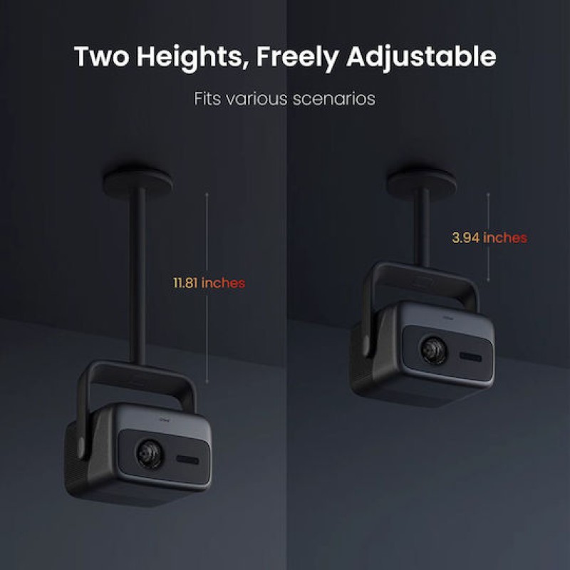 Η βάση οροφής JMGO 61010041 είναι ειδικά σχεδιασμένη για τους προβολείς της σειράς JMGO (όπως N1S Ultimate, N1S Pro, N1S Ultra, N1 Ultra και N1 Pro) και προσφέρει σταθερή και κομψή τοποθέτηση σε οροφή. Διαθέτει δυνατότητα περιστροφής 360°, επιτρέποντας ακριβή ρύθμιση της γωνίας προβολής, ενώ παρέχει και ρυθμιζόμενο ύψος με δύο επιλογές (περίπου 11,8 cm και 30 cm) για μεγαλύτερη ευελιξία στην εγκατάσταση. Είναι κατασκευασμένη από ανθεκτικά υλικά αεροδιαστημικής ποιότητας σε στιβαρό Τ-σχήμα, προσφέροντας ασφάλεια και αντοχή στο χρόνο.